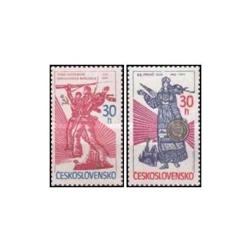 2 عدد تمبر 60مین سالگرد انقلاب روسیه و 55مین سالگرد اتحاد جماهیر شوروی - چک اسلواکی 1977