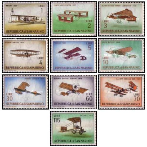 10 عدد تمبر هواپیماهای اولیه - سان مارینو 1962