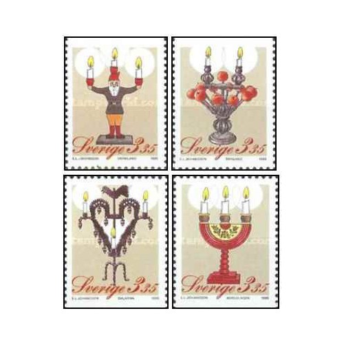 4 عدد تمبر کریسمس - شمعدانها- سوئد 1995