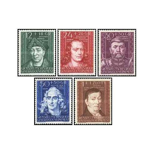 5 عدد تمبر چهره های فرهنگی - لهستان تحت اشغال آلمان - لهستان 1944