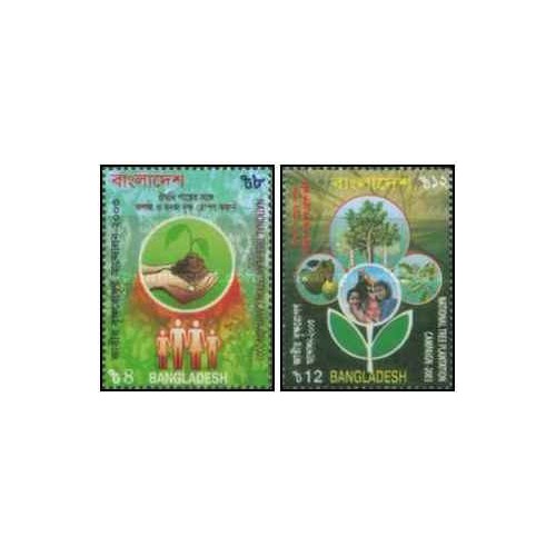 2 عدد تمبر کمپین ملی درختکاری - بنگلادش 2003