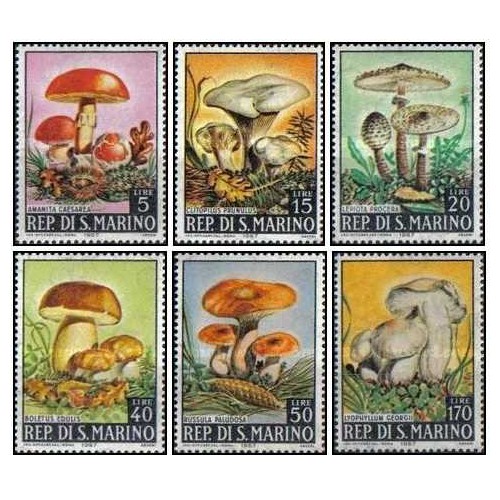 6 عدد تمبر قارچها - سان مارینو 1967 چسب یکی از تمبر ها کمی مایل به زرد