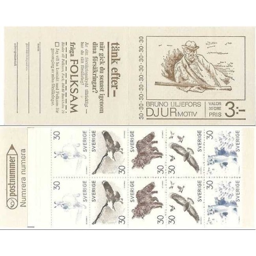 کتابچه با 10 عدد تمبر حیوانات - کاغذ فلورسنت - سوئد 1968
