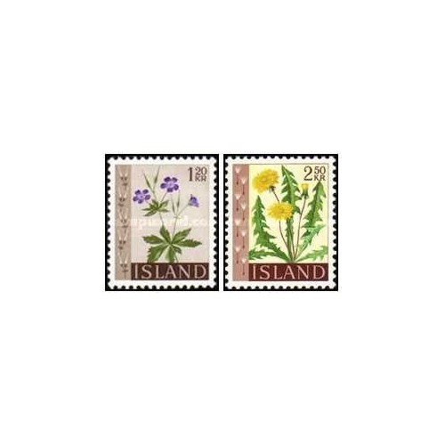 2 عدد  تمبر سری پستی -گل ها - ایسلند 1960