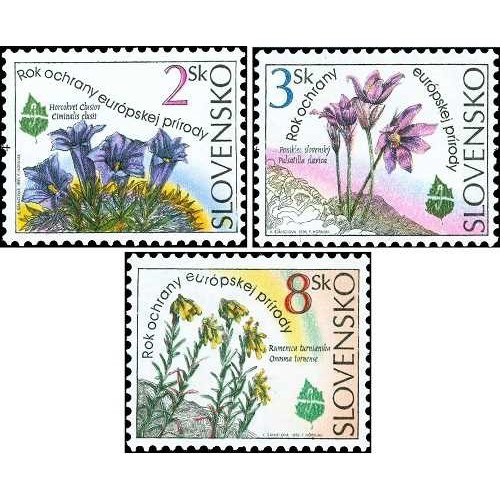 3 عدد تمبر سال حفاظت از طبیعت اروپا - گلها - اسلواکی 1995