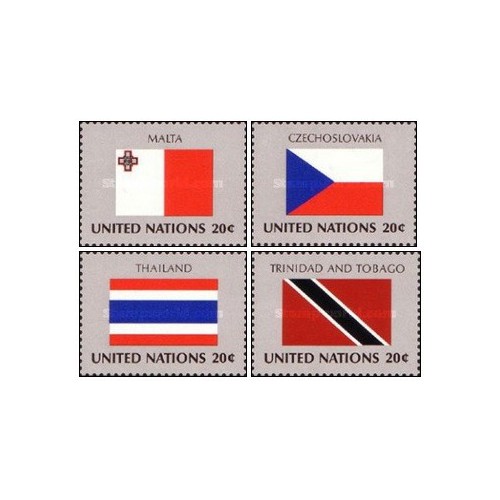 4 عدد  تمبر پرچم های کشورهای عضو سازمان ملل - مالت چک اسلواکی تایلند ترینیدادتوباگو- نیویورک سازمان ملل 1981