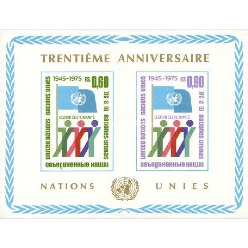 مینی شیت سی امین سالگرد تاسیس ملل متحد  - ژنو سازمان ملل 1975 ارزش روی شیت 1.5 فرانک سوئیس