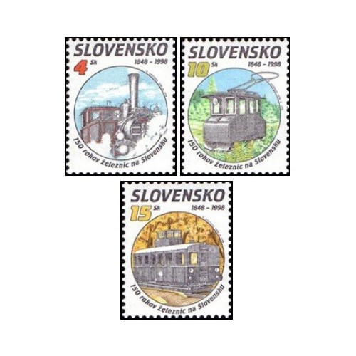 3 عدد  تمبر صد و پنجاهمین سالگرد راه آهن در اسلواکی  - اسلواکی 1998
