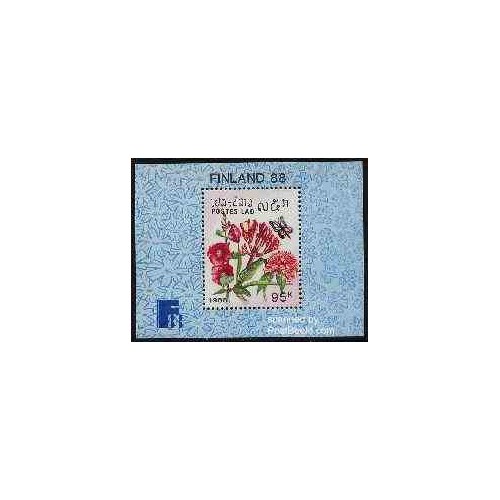 • سونیرشیت فنلاندیا - نمایشگاه تمبر فنلاند - گلها - لائوس 1988