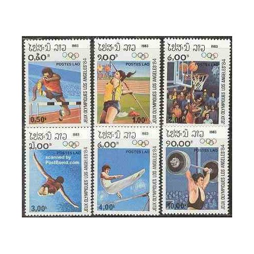 6 عدد تمبر بازیهای المپیک لس آنجلس 84 - لائوس 1983