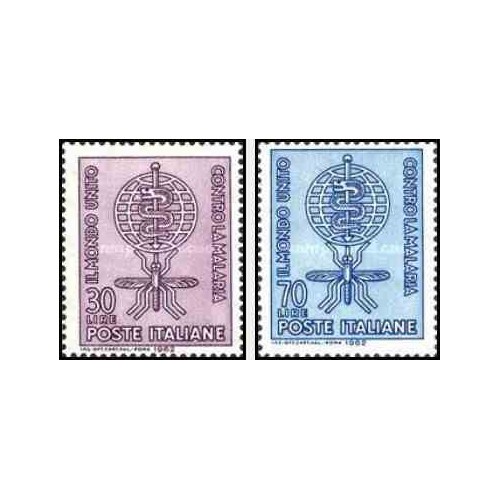 2 عدد تمبر ریشه کنی مالاریا- سازمان بهداشت جهانی - ایتالیا 1962
