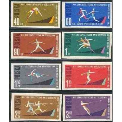 8 عدد تمبر مسابقات اروپائی ورزشهای سبک در بلگراد یوگوسلاوی - بیدندانه -  لهستان 1962