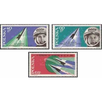 3 عدد تمبر دومین پرواز فضائی مشنرک -  لهستان 1963
