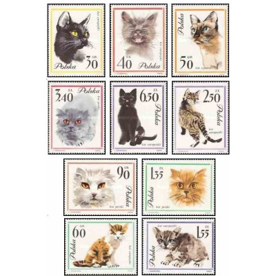 10 عدد تمبر گربه ها - لهستان 1964 - گربه ایرانی