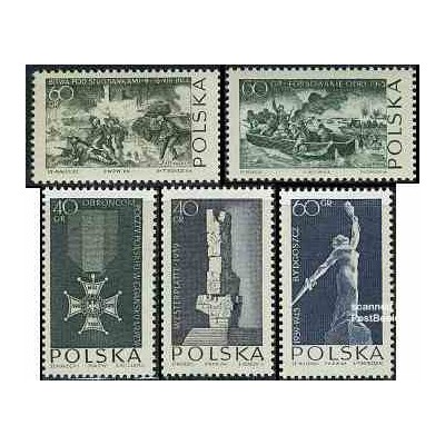• 5 عدد تمبر یادبود مبارزه و شهادت لهستانی ها در سالهای 1939 الی 1945  با تب - لهستان 1964
