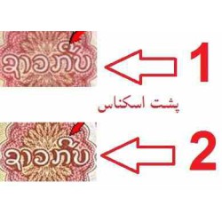 correct spelling of the currency on back (without white dot within the diacritical mark at right - reads "Kip")