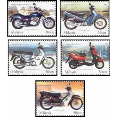 5 عدد تمبر موتورسیکلتها و اسکوترهای ساخت مالزی- مالزی 2003