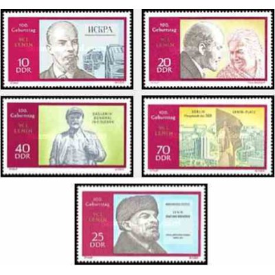 5 عدد تمبر صدمین سال تولد لنین - جمهوری دموکراتیک آلمان 1970