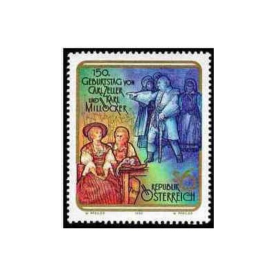 1عدد تمبر 50مین سالگرد تولد آهنگسازان اپرا کارل زلر و کارل میلوکر-اتریش 1992