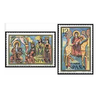 2 عدد تمبر کریسمس - تابلو نقاشی - اسپانیا 1977