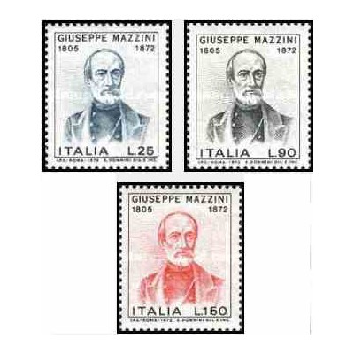 3 عدد تمبر صدمین سالگرد مرگ مازینی - سیاستمدار  - ایتالیا 1972