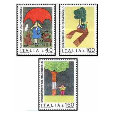 • 3 عدد تمبر روز تمبر - نقاشی کودک - ایتالیا 1976