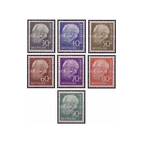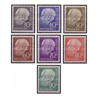 7 عدد تمبر سری پستی - پروفسور توریم . هیوس - جمهوری فدرال آلمان 1957 قیمت 37 دلار