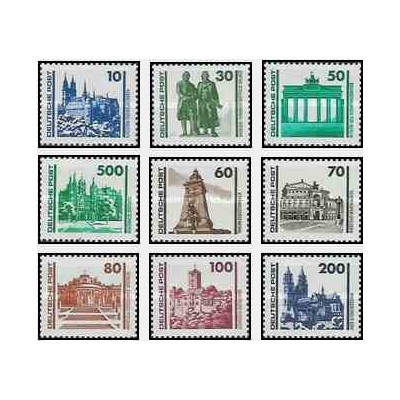 • 9 عدد تمبر سری پستی - آثار تاریخی و ساختمانها - جمهوری دموکراتیک آلمان 1990