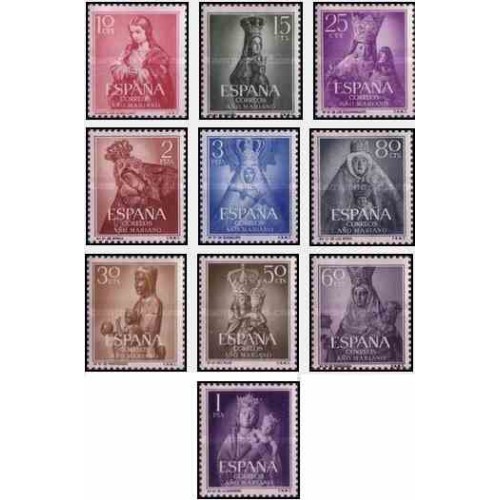 10 عدد تمبر سال مریم - نقاشی و مجسمه - اسپانیا 1954 قیمت 12.5 دلار