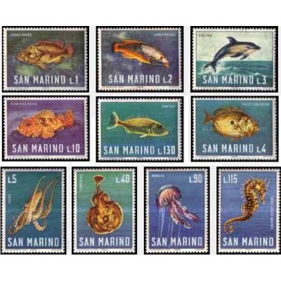 10 عدد تمبر زندگی دریائی - ماهیها - سان مارینو 1966