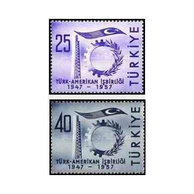 2 عدد تمبر دوستی ترکیه و آمریکا - ترکیه 1957
