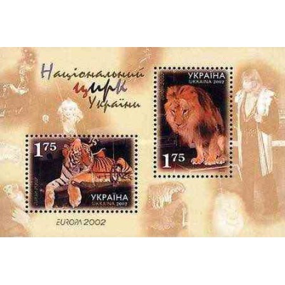 • سونیرشیت تمبر مشترک اروپا - Euro Cept -سیرک - شیر و ببر - اوکراین 2002