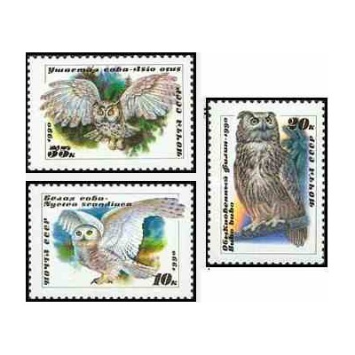 3 عدد تمبر جغدها - شوروی 1990