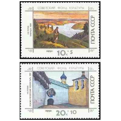 2 عدد تمبر تابلو نقاشی اثر رریخ - شوروی 1990