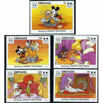 5 رقم از 9 عدد تمبر سال سگ - کاراکترهای دیسنی - گرانادا 1994
