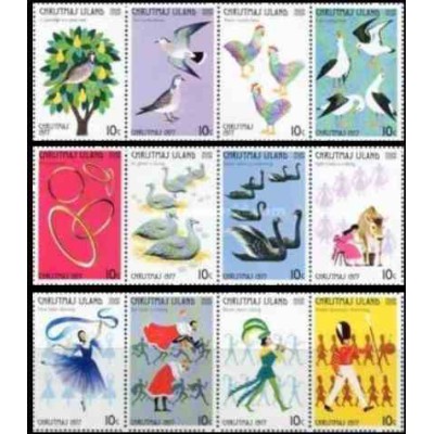 12 عدد تمبر کریستمس - 12 روز کریستمس - B-  جزیره کریستمس 1977 جدا شده از شیت