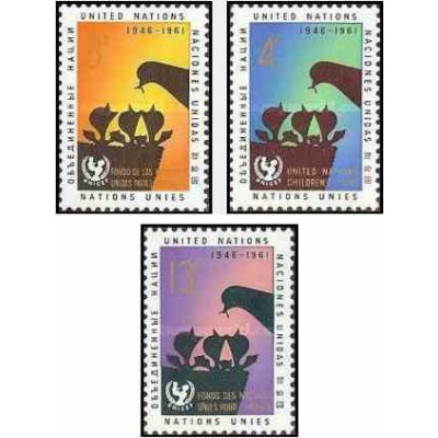 3 عدد تمبر 15مین سال یونیسف - نیویورک سازمان ملل 1961
