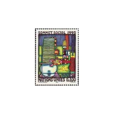 1 عدد تمبر اجلاس اجتماعی - نقاشی اثر هاندرواسر - ژنو سازمان ملل 1995