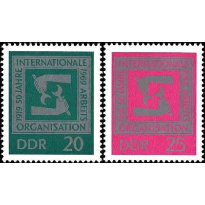 2 عدد تمبر 50مین سالگرد سازمان بین المللی کار - جمهوری دموکراتیک آلمان 1969
