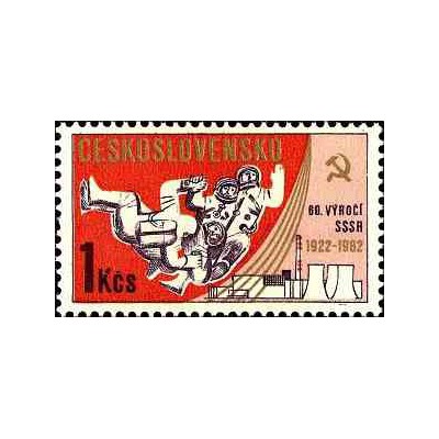 1 عدد تمبر 65مین سالگرد انقلاب اکتبر و 60مین سالگرد اتحاد جماهیر شوروی -  چک اسلواکی 1982