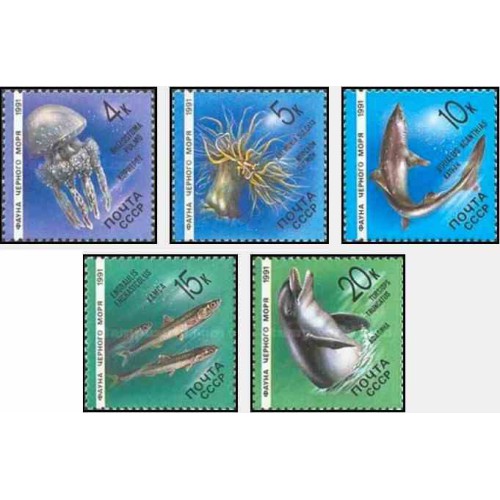 5 عدد تمبر زندگی دریائی - دریای سیاه - شوروی 1991