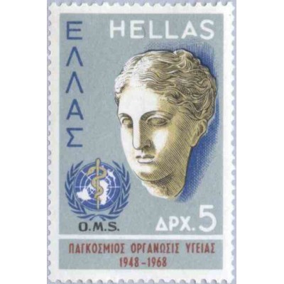 1 عدد تمبر سازمان بهداشت جهانی - WHO - یونان 1968