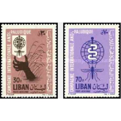 2 عدد تمبر ریشه کنی مالاریا - لبنان 1962