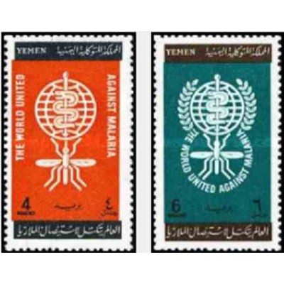 2 عدد تمبر ریشه کنی مالاریا - یمن 1962