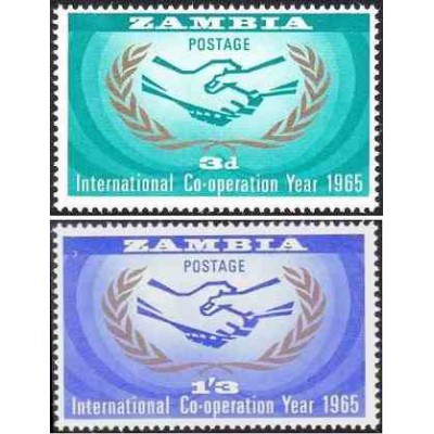 2 عدد تمبر سال همکاری بین المللی - زامبیا 1965