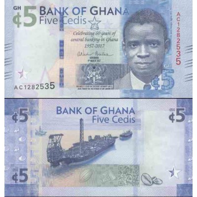 • اسکناس 5 سدی - یادبود شصتمین سال تاسیس بانک مرکزی غنا - غنا 2017  - 4 مارس 2017