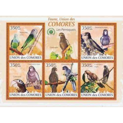 مینی شیت پرندگان - طوطیها - کومور 2009 قیمت 9.31 دلار