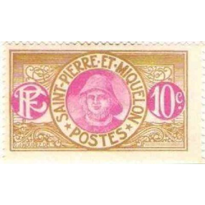 1 عدد تمبر سری پستی - ماهیگیر  - 10 سنت - سنت پیر و میکوئلن 1909 با شارنیه