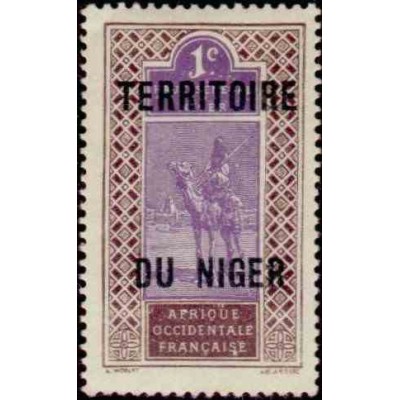 1 عدد تمبر سری پستی - سورشارژ قلمرو نیجر - 1 سنت - نیجر 1921 با شارنیه