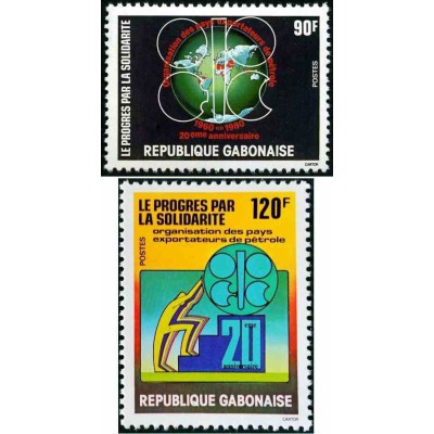 2 عدد تمبر بیستمین سالگرد اوپک - سازمان کشورهای صادر کننده نفت - گابن 1980